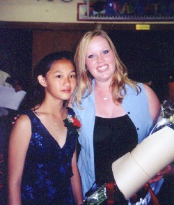 me n ms.wingert (my 8th grade homeroom/science teacher) in front of the auditorium