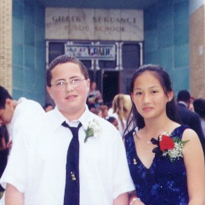 scottnanda (my nikname for him...his name is really scott tho) n me in front of the skool...he wuzn't even suppose to be in this pic...but since mai sis wanted a pic of me in front of the skool n i didn't wanna take it by myself...i jus grabbed him n made him take it with me...haha...o0oh yeah...mai aunt said he looked like harry potter!...n as u see...we both weren't even ready for the pic!