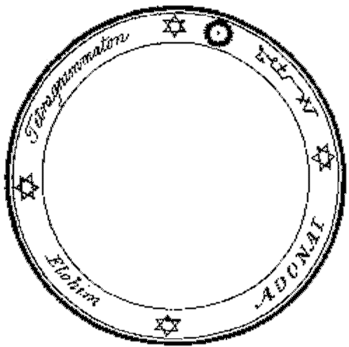 This circle is to be drawn on the ground with the chalk, and you are to stand within in it for the entire durration of the conjuring. The demons will attempt to force you out, for they can do nothing to you while you are within the circle, for it shall be consecrated. The consecration is given with the conjuring.