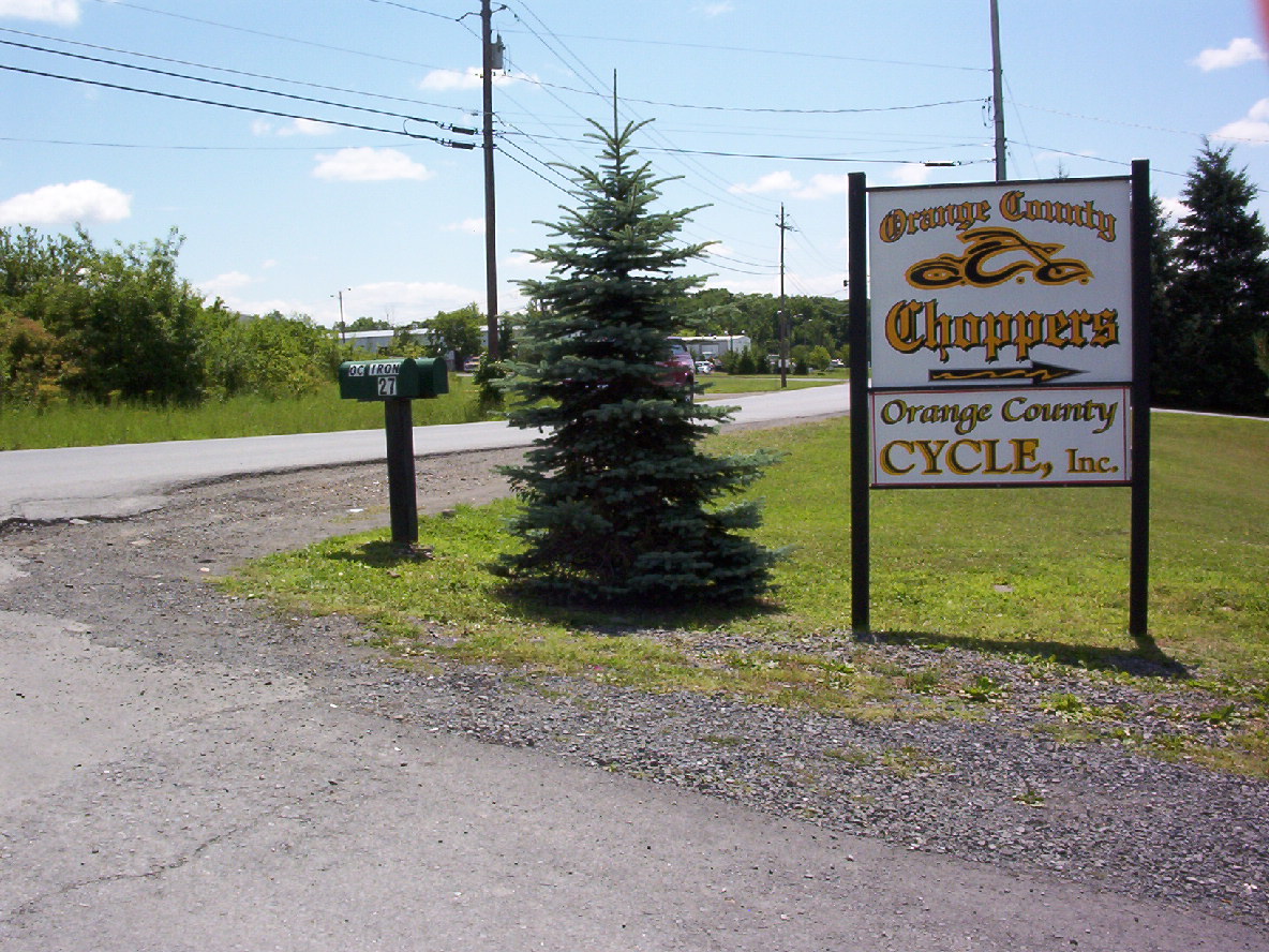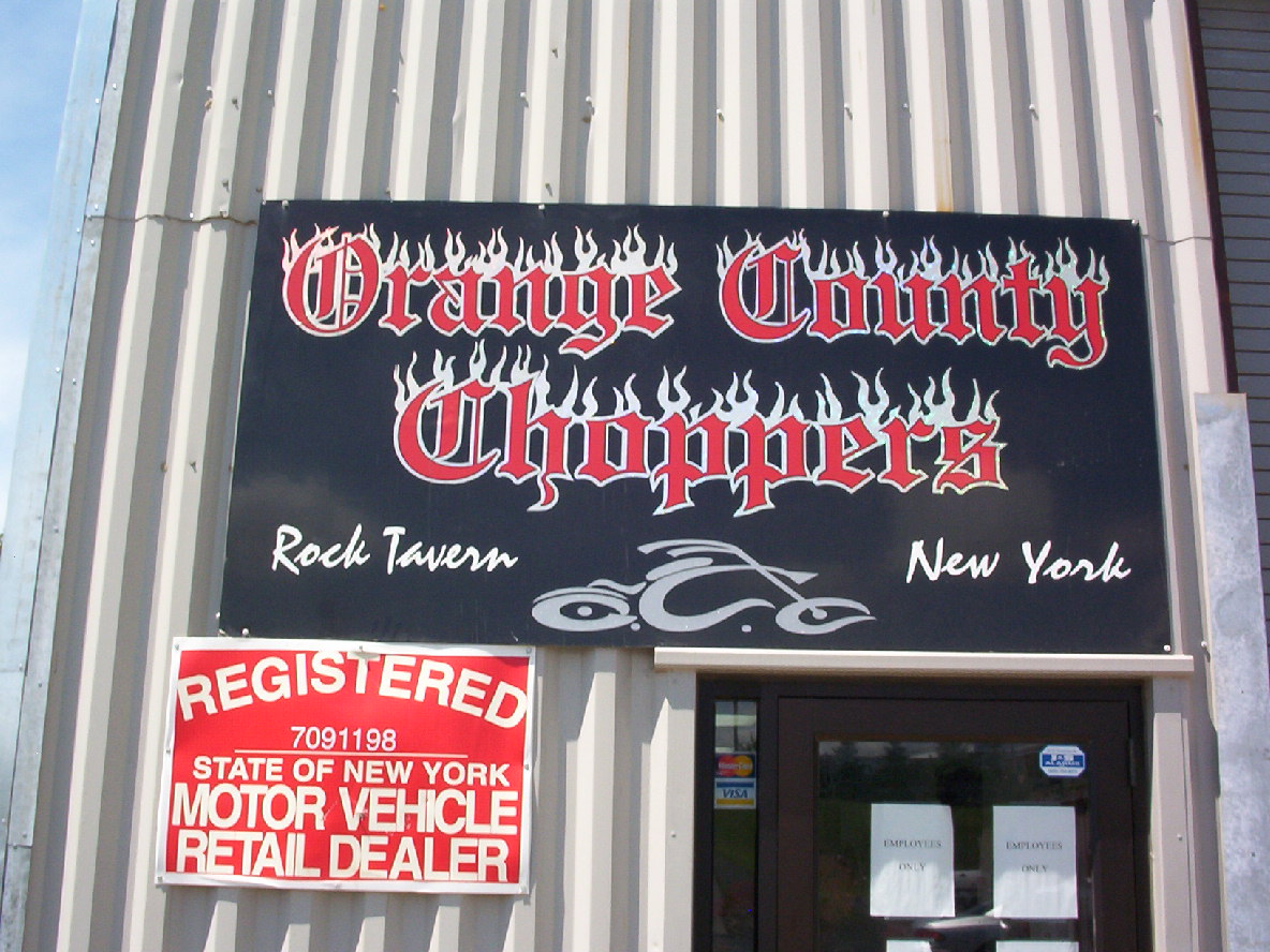 The sign for Orange County Chopper