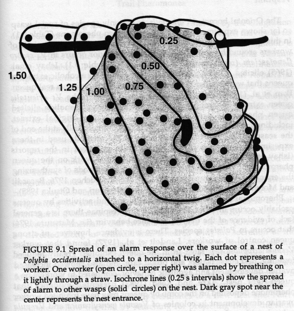 Click here for picture of pheromone spread in a bee hive (Picture taken from: Pheromone Communication in Social Insects, 1998, 225)
