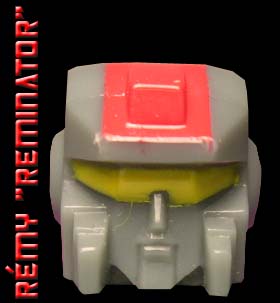 R-7 Rémy's Astrotrain (Anime/ New Year Version) toy review: Manufacturer - E-hobby with permission from Takara. Line, Series/ Wave: Generation 1 Line, Series: Collector's Edition (New Year Version) from Ehobby. Year Issue: [Jan. 2004] - This cartoon accurate version of Astrotrain had never released before until now. Made: [China] - Although the original toy was made in Japan, the qualities and materials are pretty much the same as the reissue. Scale: [N/A] Box or Card Dimension In Inches: [LxWxD] - 8 1/2 x 4 1/2 (7 1/4 up to flap) x 2 7/16 - Box. Packaging Method: Mint In Seal Box. Contents were packed with the following procedure: On top of the plastic tray is: "1" Astrotrain trading card in his cartoon colors. Taped down and sandwiched between two clear plastic trays are: " 1" triple changer (train, shuttle, robot), " 1" gun. On the back of the card board and not inside the clear plastic tray, a taped down bag which contained: "1" sticker sheet, "1" instruction sheet, and "1" miscellaneous text sheet. Box Special Note: Front Box Appearance: No art. Back Box Appearance: 1984 Battle Scene Box Art. Box Point or Robot Point: [3] - This number can be found on the right side flap of the box. You have to open the box to see it. It contains number and either Autobots or Decepticons insginia depending on which faction you are getting. Approximately Toy Dimension In Inches: - Height Up To The Head: 4 10/16 Maximum Height: 4 13/16 (top of the chest air intake) Width from shoulder to shoulder: 1 3/4 Maximum Width: 3 11/16 (from wing to wing) Dept: 2 1/2. Toy Stamp/ Fine Print: - © HASBRO '85, (Japanese text) ©TAKARA CO. LTD, 85', CHINA. Toy Stamp/ Fine Print Location: - Can be found on the underside of both the main wing. Hasbro text is located on the right wing while Takara text is on the left wing. Transformation Of Difficulty: [Easy] Material Durability: [-A] - Pretty durable Toy Materials: Die Cast Metal: Top part of the train head. Chrome Metal: None. Rubber: None, plastic wheel. Plastic: Main material. Clear Plastic Window: None. Stability: [-A] - Robot mode can stand on any surface. Fun Toy: [-A] - Pretty a fun toy. Negative Drawback - His arm length is too short for his size. Articulations: Head: Cannot be rotated. Shoulder: Can be swung at a 180 degree and a 90 degree sideway. Arm/ Elbow: Cannot be bent. Wrist/ Hand: Cannot be rotated, hands cannot be hidden. Hip/ Waist: Cannot be bent. Leg: Cannot be bent. Knee: Cannot be bent. Ankle/ Feet: Cannot be rotated no sideway movement. Rub Sign Logo: [Yes] - The Decepticon's rub sign located on the right side of his leg. Robot's Cartoon looks alike: [-A] - He looks pretty much like the cartoon. Vehicle's Cartoon looks alike: [A] - Utterly the bomb!!! Very Hot. Special Notes: Here are "3" special notes which I thought you should know: 1 - Due to the upper body and the style of transformation, in time, Astrotrain will suffer the compression leg syndrome. In other word, Astrotrain leg will shrink down and bury into his feet which will make him look shorter. If you want to avoid the problem, then leave them in his vehicle mode. 2 - Be gentle when flipping the rocket thruster to reveal Astrotrain, reckless act can cause a scratch on his face paint. 3 - When converting from train head to the shuttle nosecone, if the piece doesn't fold or flip, don't force it. Instead, you have to either push in or out the piece before making the flip. Overall Grade: [+B] - If the purple color was chosen correctly, I could've given an A. Also the short midget arm really kill this toy proportion.