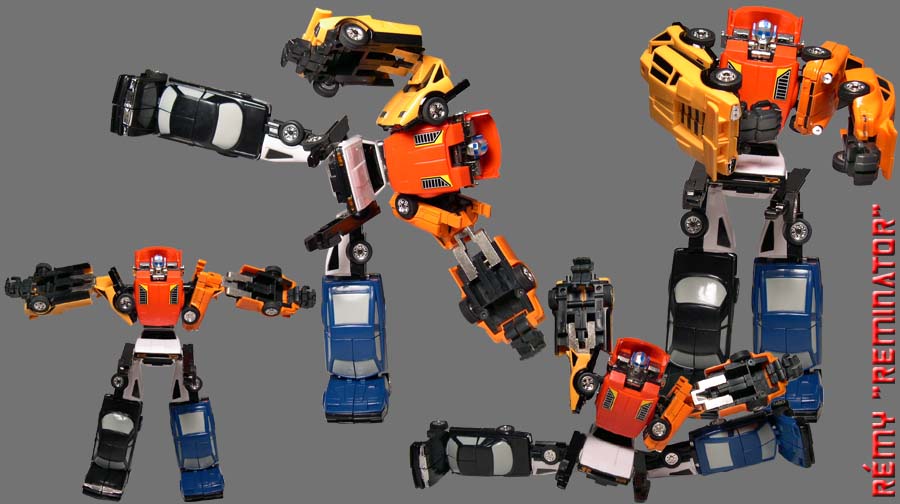 R-8 Rémy's Puzzler action figure review: Manufacturer - Tonka/ Bandai. Line, Series/ Wave: Challenge of the Gobot Line, Series: Unknown. Year Issue: [1984] Made: [Japan] Scale: [N/A] Box or Card Dimension In Inches: [LxWxD] - Approximately 13 X 9 10/16 X 2 10/16 - Box. Packaging Method: Mint In Sealed Box. Contents were packed with the following procedure: Rest down on the Styrofoam container are: "1" red car, "1" yellow car, "1" orange car, "1" white police car, "1" blue car, "1 black car, and above that is "1" instruction sheet. Box Special Note: Front Box Appearance: Puzzler box art. Back Box Appearance: Puzzler box art. Approximately Dimension In Inches: Height Up To The Head: 7 7/16 Maximum Height: 7 11/16 (back of head hood) Width from shoulder to shoulder: 4 3/16 Maximum Width: 4 1/2 (lower arm) Dept: 3 Figure's Stamp/ Fine Print: Everyone except Jig Saw - BANDAI ©BANDAI 1984, JAPAN. Jig Saw - © BANDAI, 1984, JAPAN Figure's Stamp/ Fine Print Location: Tic Tac toy stamp can be found in the inner side of his feet (right feet: BANDAI ©BANDAI 1984, left feet: JAPAN). Crossword toy stamp is on the back of his back. Pocket toy stamp is on the back of his left leg. Jig Saw toy stamp are found on his front right shoulder joint (©BANDAI 1984), and his front right thigh (Japan). Zig Zac toy stamp is on the back of his leg (left leg: JAPAN. right leg: BANDAI ©BANDAI 1984). Rube toy stamp is also on the back of his leg too (left leg: BANDAI ©BANDAI 1984. right leg: JAPAN) Transformation Of Difficulty: [Medium] Material Durability: [-A] - Pretty durable. Materials: Die Cast Metal: Tic Tac - Waist, leg, and upper arm. Crossword/ Pocket/ Jig Saw - Leg and arm. Zig Zag/ Rube - Chest and leg. Chrome Part: Tic Tac - Chest and arm. Crossword/ Pocket - Headlight. Jig Saw - Siren plate. Rube - Front bumper. Zig Zag - None. Rubber: Wheels (All). Plastic: Main material (All). Clear Plastic Window: None (All). Stability: [A] - Pretty stable. Fun Figure: [A] - Combiner team is always fun due to many member. Could be a little bit more fun if the action figures come with weapon. But then again, Gobots action figures hardly come with any weapon. Negative Drawback - None. Articulations: Head: Cannot be rotated. Shoulder: Can be swung at a 360 degree as well as a180 degree sideway. Arm/ Elbow: Can be rotated at a 360 degree sideway. Also can be bent at a 90 degree angle too. Wrist/ Hand: Can be bent at a 270 degree.. Hip/ Waist: Cannot be rotated. Leg: Cannot be bent. However, leg can do a full split and can also be rotated at a 90 degree sideway. Knee: Cannot be bent. Ankle/ Feet: Cannot be rotated but feet can be bent downward. Robot's Cartoon looks alike: [A] - Definitely looks like the cartoon. Vehicle's Cartoon looks alike: [N/A] - Combiner has no alt. mode. Special Notes: Here is "1" special note that I think you should know: 1 - Always lift Puzzler entire body from the feet and up to avoid the splitting and falling parts. Overall Grade: [+A] - Although the elbow articulation is the biggest weakness, as a whole and when compared to some of the G1 Transformers combiners such as Devastator, Superion, Menasor, or Bruticus action figures, I still think Puzzler in a way is much better than these guys.