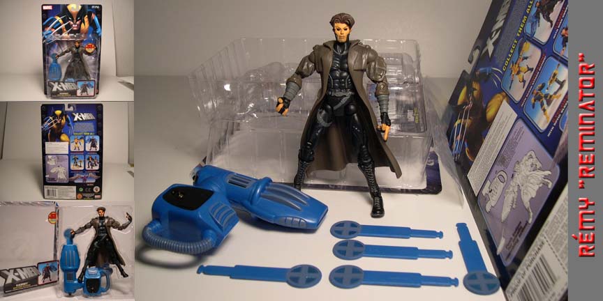 2 - Back of the card 3 - Here's how it looks once the card was removed. 4 - These are all the contents that were included in the box/ package/ card: "1" Gambit (Xtreme) action figure, "1" blue disk shooter, and "5" disk missiles. |