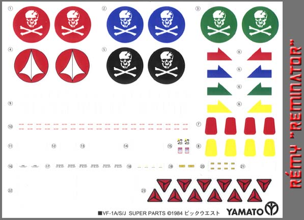 R-2 Pre-Applied Decals/ Stickers: The 1/48 VF-1S does not come with any Pre-apply decals adhered to the toy itself, only Pre-apply paints. However, it does come with a decals sheet for you to do it yourself. Stickers Sheet: