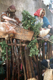 von vier starken Händen an den Armen gepackt, in einen Schubkarren