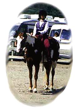 This is Laura's braggin' page! Here are some of the horses and ponies that she has shown. Her favorite was Whos That Girl/Tags Girl (also known as Phyllis)--a sorrel overo paint/pinto mare. Showing at the New York state Pinto shows, Phyllis and Laura earned three ROM's (registers of merit--35 points and a 1st place in one class) in Youth Western Pleasure, Youth Western Showmanship, and Youth Halter. By doing so, the pair earned their Pinto Youth Championship in 1993.