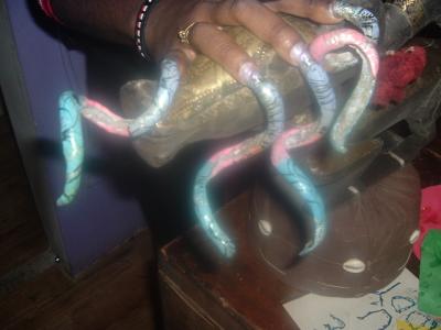 Your nails are superb. I like how they twist and curl and their thickness. Also very impressive nail polish. Please provide us sone new photos of your lovely nails.