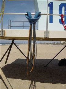 For this easily made device, a rope is slipped through a couple of foam bicycle handles and then tied on the ends. Bicycle handles provide numerous options, from simple foam, or for the ultimate in decadence, molded rubber. The exerciser shown above also demonstrates how easily you can make dedicated isosizers. Make a bunch of 'em for various exercises! You can also combine a few of them by looping them together for readily available differing lengths. |