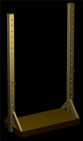 Here's my idea for an isometric machine. Basically it's comprised of two 7 foot 4 x 4's with 1" holes drilled 4" on center for 1" wooden dowels. The 4 x 4's are jointed at the bottom and secured to the base structure with (2) 3/8" bolts ea. side, and 2 x 4 bracing, back and front. Using a 5' steel bar or pipe, you could slip the dowels into select holes on either side and perform a myriad of barbell type isometrics ranging from dead lifts through squats and up to presses. The lower holes could be used for pushups, and the top holes, which are drilled angled slightly downwards could be used for chinups.