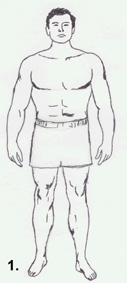 Stretch - Envision a cable cross-over machine for your pectoral muscles. While standing, reach way out to your sides and up, and grab hold of the "handles". Pull your arms down towards your mid-section, crossing your arms in front of you, and continue moving your arms as far as possible, prescribing an arc. Tense the muscles of your pectorals while doing this, and then really "crunch" them at the furthest extent of your arms crossed in front of you. Perform ten repetitions, alternating which arm is in front of which with each rep. At the end of the ninth and tenth repetitions, flex and crunch your pecs for ten seconds each. |