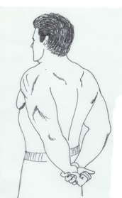 Isometric - While standing, put your arms behind your back and grasp your right wrist with your left hand. Straighten your arms down while maintaining that grip. Now attempt to lift your right arm straight out and up to the right side while holding it back with your left hand. Hold for 10 seconds. Repeat with your right hand holding your left wrist. |