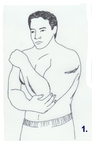 VRT/Stretch –Reach for the sky. While standing, raise your right hand to your right shoulder. Now, imagine that you are pushing an immense weight upwards. Push. Tense your shoulder as you push. Push your arm straight up and reach as high as possible. Concentrate on isolating and contracting your right deltoid muscle and hold for 10 seconds. Repeat with the left arm. |