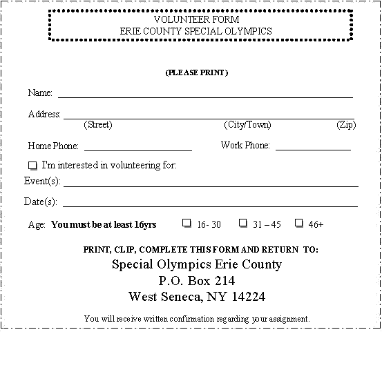 The 2007 Special Olympics Erie County Competitions are in need of volunteers to make them run smoothly. Help from people like you is the only way these events work! Our athletes thank you for your time and consideration!