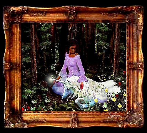 The Unicorn hesitated until it was sure of the purity of her heart then the holy creature knelt and laid its head in her lap. As she cradled it, the princess was filled with immeasureable bliss. Her tears of joy fell on to the Unicorn and sparkled like diamonds in the moonlight.