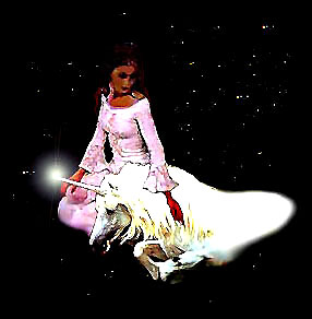 Therese finally came to her senses and realized what was happening. With a cry she ran across the clearing between the flashing hooves of the circling horses and threw herself on the fallen Unicorn and cradled its head in her white arms.