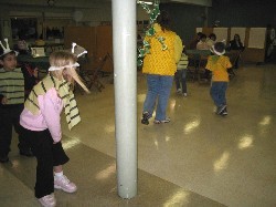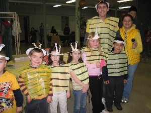 The kindergarten class collected pledges and then buzzed around the church hall for 5 minutes.