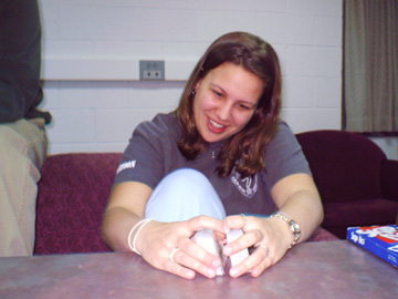 Wow Meghan... WOW... hehehe ok, so she was the second, it was actually really cool how we met, she just happened to pass my room and asked if i wanted to watch Conan, which OF COURSE i did :P so i took matt down to her room with me and we seriously spent 3 hours talking and at the end of the night we were like best friends.. of course also at the end of the ngiht we were accausted by drunken people for whom we needed to call security....Meg is the funniest person i have EVER met.... anything she says just makes you laugh, even if it's not intentionally funny :P