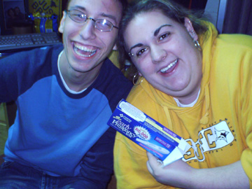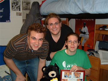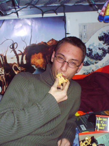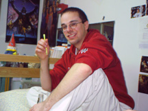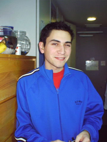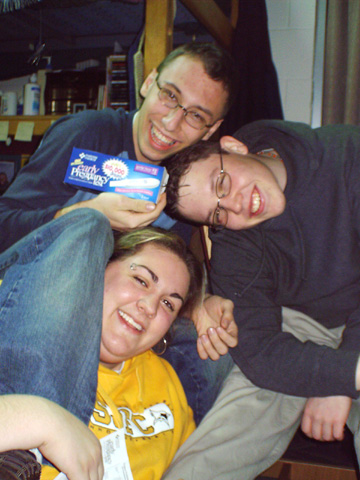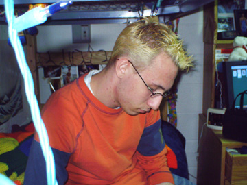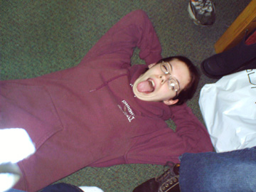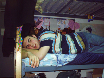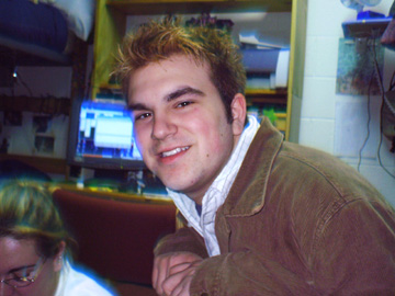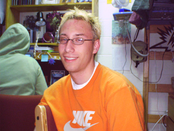 In no order of importance at all, I promise, this is Evan, we're at school together now, not that I ''followed'' him, but he just seemed so damn enthusiastic about it, that it put it high up in my list.. I think i've known him since 7th grade, and he's just always been one of those people who I couldn't imagine not knowing. World-renound for his AIM profiles/away messages... yeah you are ;) he is currently an RA, and a great one at that.. but the fucker gets his own room.. damn him :)