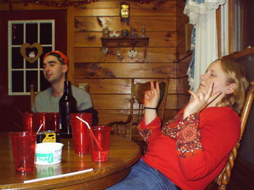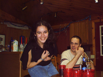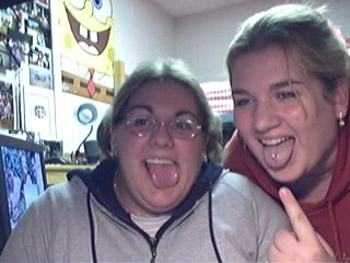 Can you tell that these pics were taken on New Year's Eve?? Whereupon my ass was SOBER!! That's right... :P This, the blonde.. with the unflattering pose (mouth open--sorry kid) well, we go WAY back.. she was the first friend i made from the group, it was a little odd most because her older brother and my older sister were best friends for forever, and i guess thats how we came together. i love this girl to death, i definutely consider her my sister, hell, even my parents to.. she isn't allowed to knock on our door, we MAKE her come in. Sadly, along with Nat, she goes to college in PA, which is far from Rochocha.. so i only get to see both of them on breaks where we're both home.... my first job was because of her, and although the job sucked ass!!! it was definutely worth working with her... but thank GOD i quite that job... hahaha