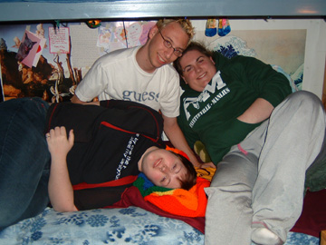 Tina in the blue and Di in the white, two more of my favorite people...all together two of the most excited and fun and hormonal people i know.. and when i say ''hormonal'' i mean it in a good way... :P they can both be so excited and the so pissed off the next second, it's really great to watch, but seriously, i love them, both wonderful kids whom i can't wait to see again, especially since i spend almost the entire summer at tina's house.. it's a second home.. a fun second home.. ;P