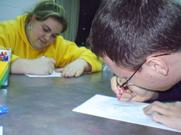 Jenn is the cutest person that i know, for real for real... she is so artistic, and talented and sweet.. its almost too much, of course she doesnt think any of this about her self, so :P she was with me all through independent art in senior year of highschool, and although she thinks i would have been fine all alone, i was so happy to have her there, even with all her drama... plus, shes one of the only people who i believe when it comes to telling me im worth something.. :P :) love you jen. With her is Nick, a quasi-friend of mine, altogether sweet guy, and good to jen, so he's good in my book.