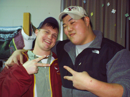 Matt... truEly something else... :P he was my first Fisher friend, and somehow we became such good friends so quickly, which after about a week of being here, branched off into the rest of the fockers.. he is energetic and opinionated and passionate, so much so it scares me sometimes, but he's one of those people that have made a simple but profound impact on my life.. too bad he's transfering next year.. hopefully i'll still be able to see him over the summer and next year.. :P