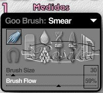 3.Vas a las herramientas (1) y escojes la brocha (SMEAR)