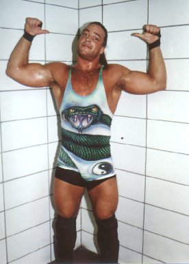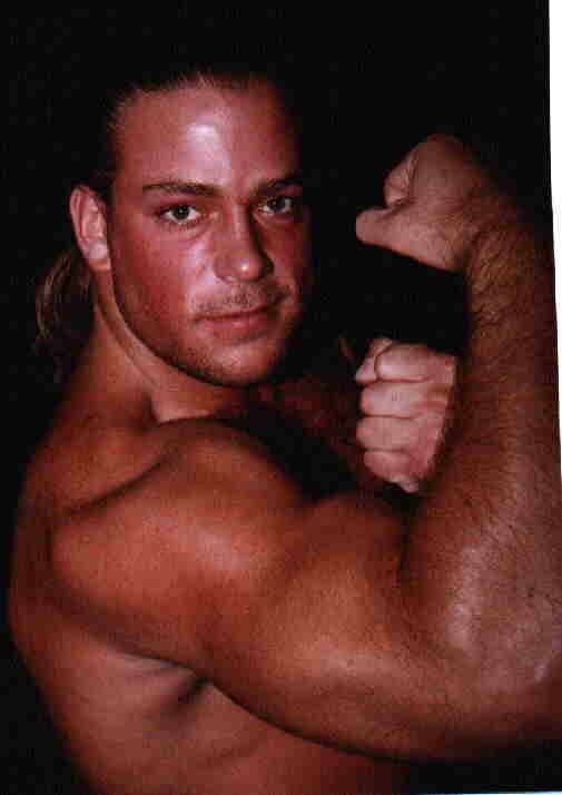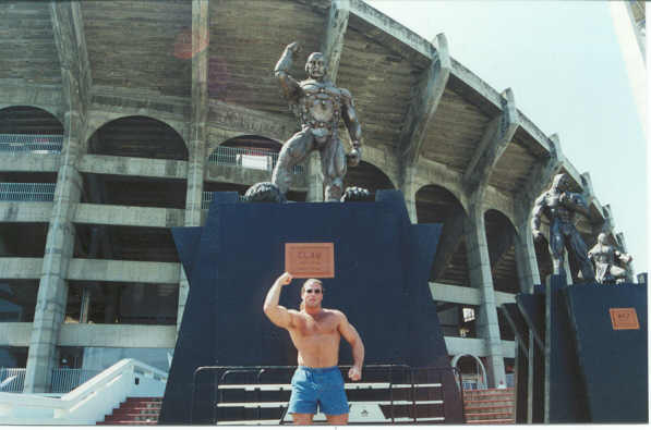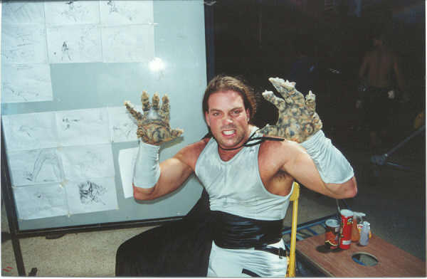 RVD poses in front of a statue of his character "Claw" outside of the SWCW Stadium.