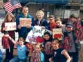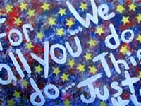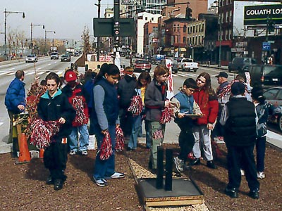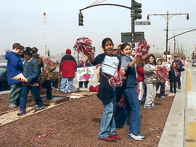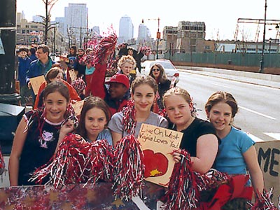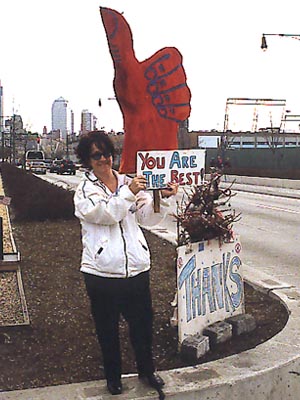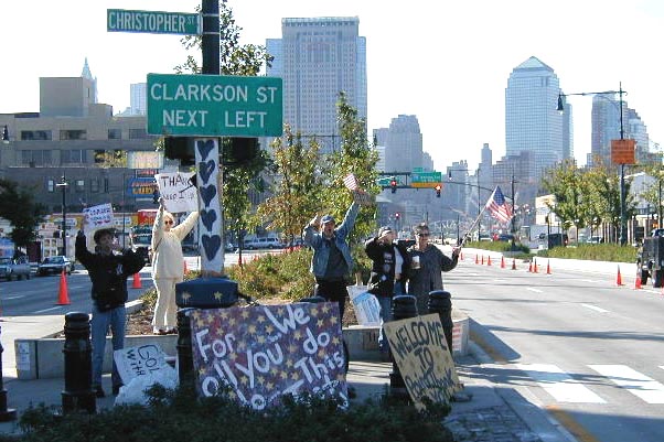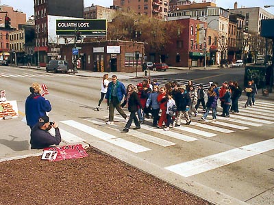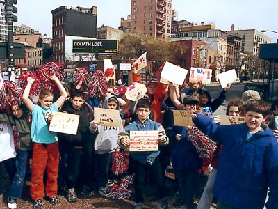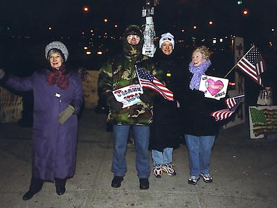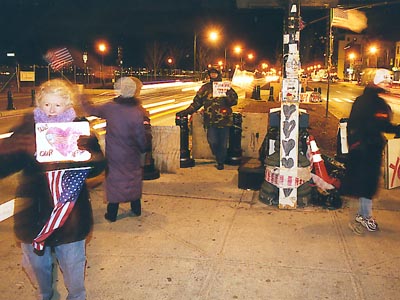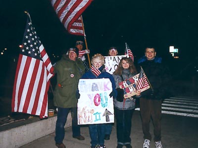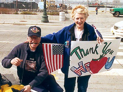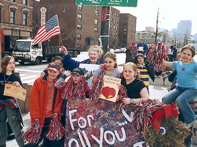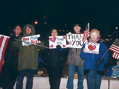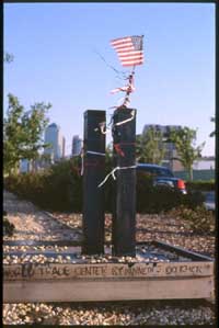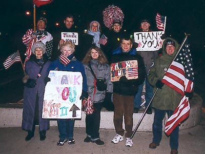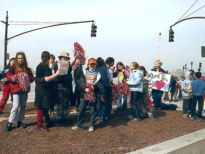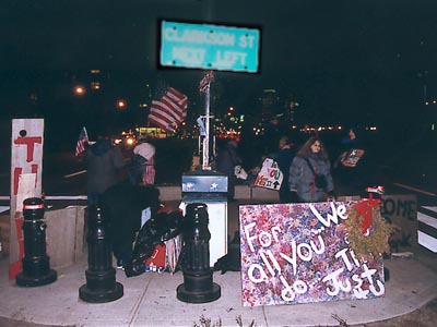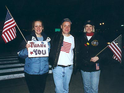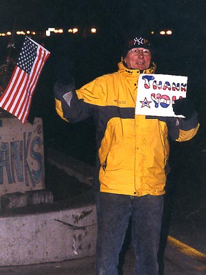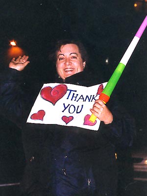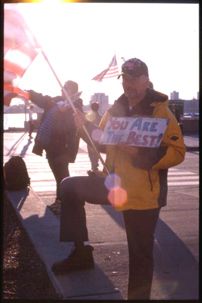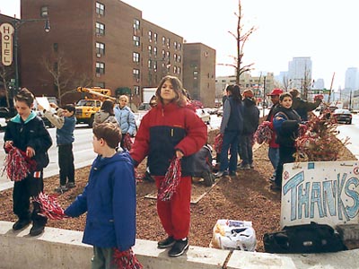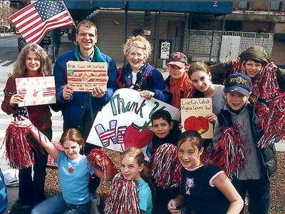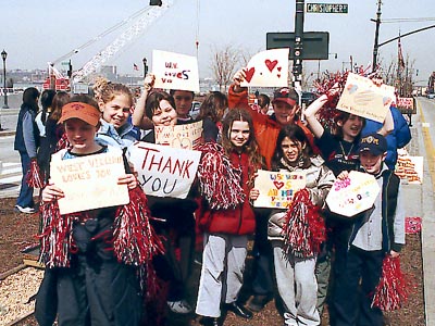 4th and 5th grade students from PS 3 near Point Thank you have been coming to the corner every Thursday. They've also been corresponding with another school in West Virginia. The class in West Viginia made special thank you signs for the pupils to take to the corner. One Thursday, Secret Service agents stopped to say hello to the class and gave them all NYPD badges and one extra to send to the teacher in West Virginia. One positive outcome from such a tragic event is all the connections and friendships that have been formed since September 11th. |