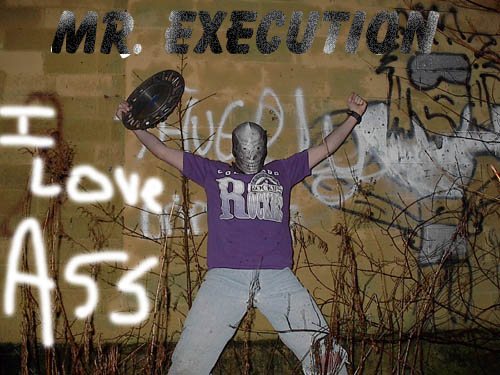 Mr. Execution- Went from Jobber to World Champ...Huge EWA success story. Likes to mosh and call people faggots. Has beaten The new breed and D.O.E. in single matches. Former 3 time IC champ and winner of the only 4 jobber 4-way dance. He was fired in EWA 50, but beat WMX in EWA 52 to get his job back. He lost a 3 on 1 handicap match against WMX to have to wear a dress. Along with Face, formed a team called Facing Execution. They beat the DOE to become Tag Team Champs. At one time he held 3 belts(EWA world, EWA tagteam, and PXW World.) Dated Kitty Valentine briefly in 2005, before getting dumped and living on the railroad tracks. He will return to the EWA about once a year and even won the vacant IC belt on one of those return visits by beating Face, but then lost it back to him. His latest show was EWA 117 where he lost to X-Loco.
