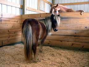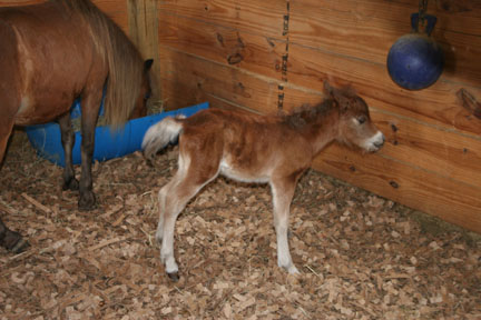 Taz mourned for his friend for 2 months. They had been so close, attached at the hip. He was so depressed. It was sad to see him like that. With much prompting from my husband I finally gave in and we got another mini. That's where Dolly comes in. (picture on bottom left) We bought Dolly and found out a week later when my vet came to vaccinate Taz and check Dolly over that she was pregnant! Wow! What a shock! Here I didn't even know if I ever wanted another horse after losing JJ because it was so heartbreaking. I never wanted to go thru that again...my husband really had to convince me. Now here we are not only getting one horse but two. |