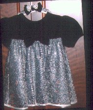 18mos(length 15 and half )black velvet top with bow and silver sequin skirt,matching hairbow. Great for Holiday pageant or Sportswear. $45.00 includes shipping. Esolis@aol.com