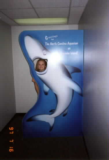 This is me at tha North Carolina Aquarium in case u can't read tha shark thing. I'm being a dork as usual. I wuz trying to get my cuzin to pose but he wouldn't.
