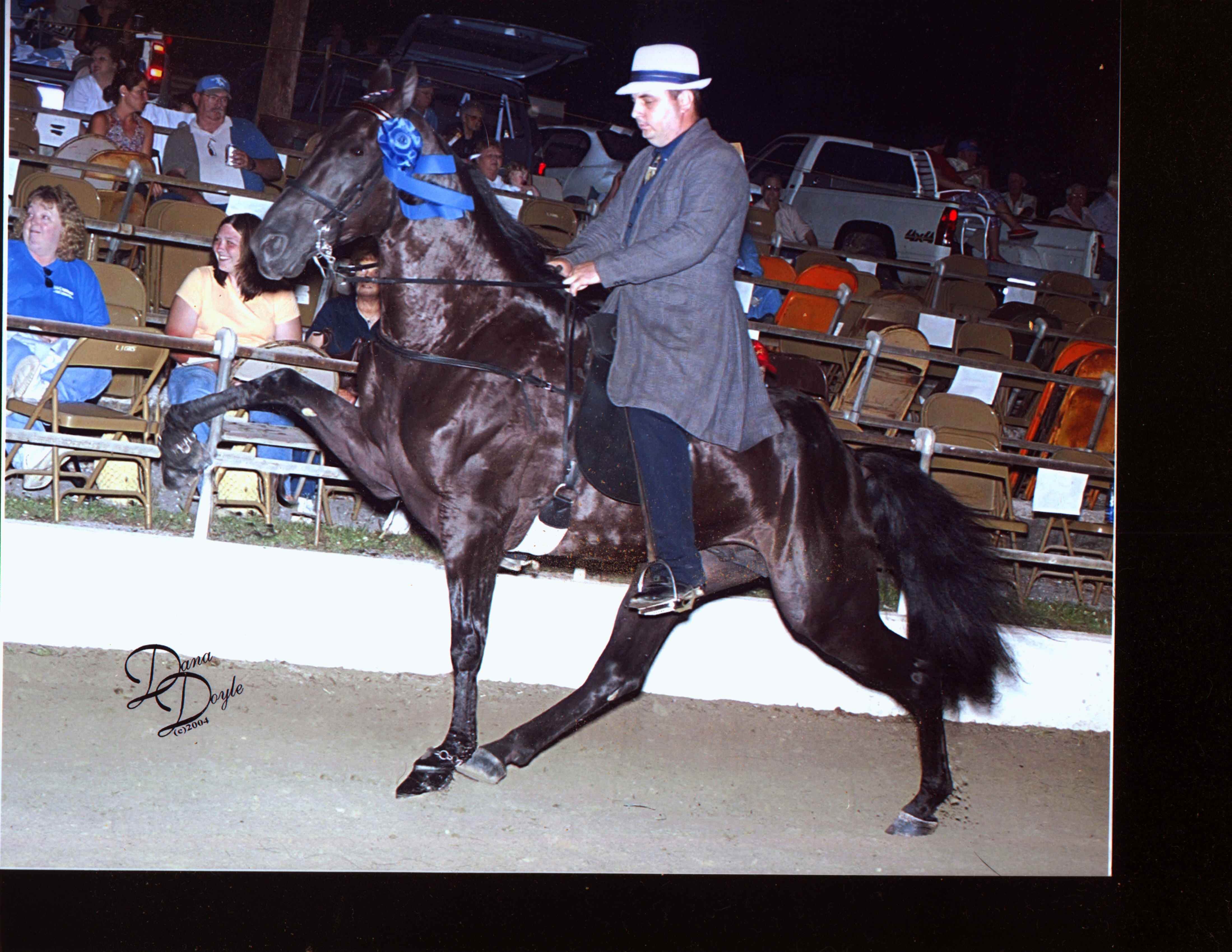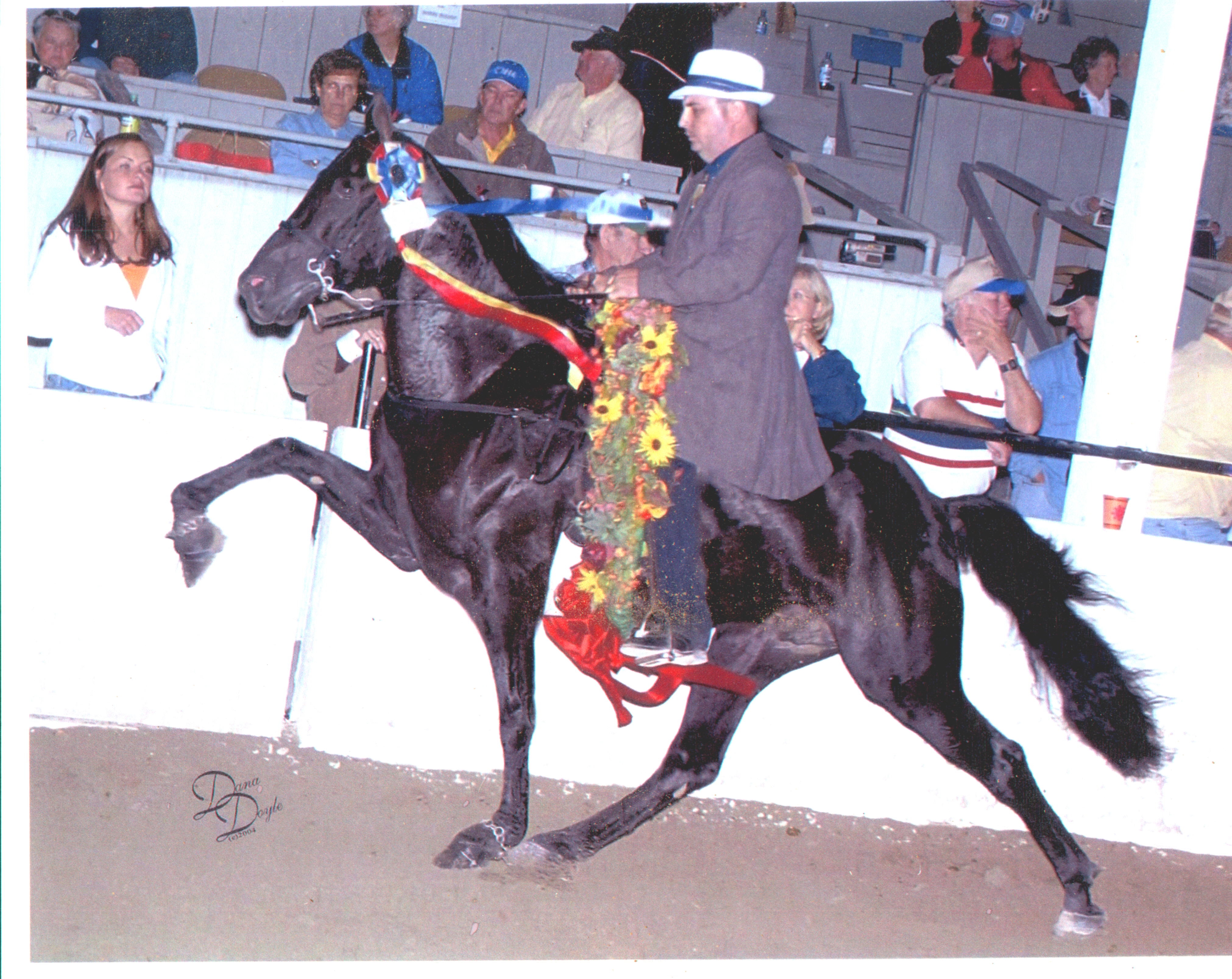 "Water" is a proven show horse, winning the Kentucky Celebration's 2004 AND 2005 World Grand Championship in Park Performance. "Water" has a desired physique, those crooked back legs and banana ears are an asset! He has been sparingly bred throughout his career and has now been made available to the public. His breeding potential has been realized and he will prove to be an outstanding sire.