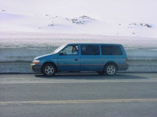 From the terminal we drove to Thompson Pass at an elevation of about 2,600 feet above sea level. We saw lots of snow, several bald eagles, and a coyote on the way. There were beautiful views of waterfalls pouring off the rocks on either side of the highway. A beautiful blue-green stream parallels the highway for many miles. The snow high in the pass is still tens of feet thick in places. There were skiiers and snow machiners enjoying the snow. We got a look at the terminus of the Worthington Glacier near the Thompson Pass. I am told that there will be more impressive glaciers to view on the ferry ride to Cordova tomorrow.