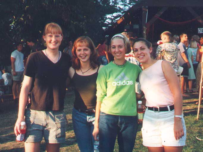 ....renee (my suitemate), pamela(my roomie), me and bethany gullickson at the luau dinner....