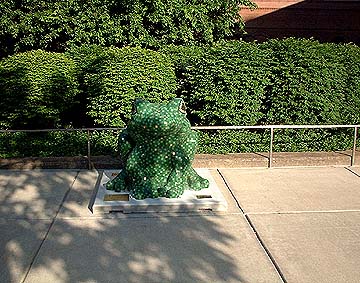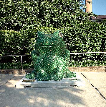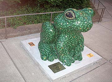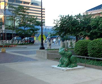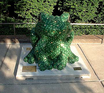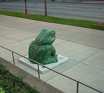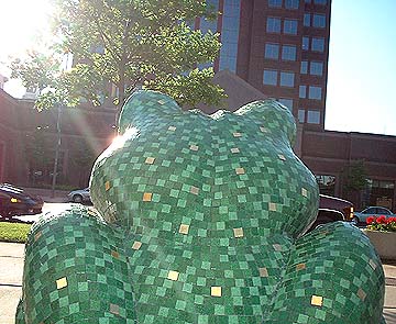 It's Reigning Frogs made its gala premier at Rally-by-the-River on Friday 8 June 2001. Rally-by-the-River is a big party along the banks of the Maumee River every Friday during the summer. Anyway, it's a loud, boisterous bash that I'd rather not attend. Personal preference, I guess. But anyhoo, the frogs were officially unveiled at the Rally. All in all, there were about fifteen or so frogs out on display.
