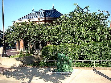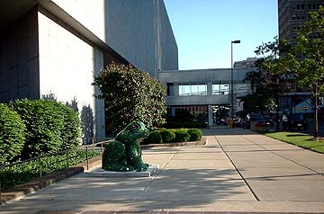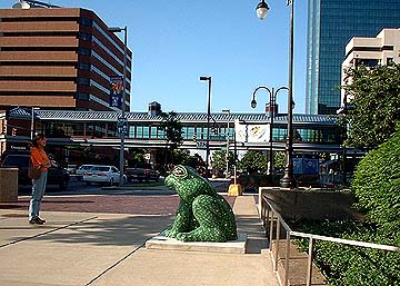 (LEFT) The frog can be seen here with COSI's outdoor fun area in the background. Sorry about the image quality.