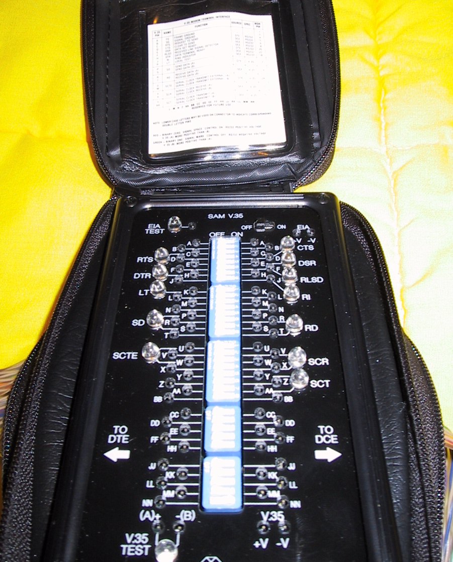 From what I understand, these testers are used for monitoring and diagnosing data signals. The SAM V.35 is a portable unit that allows access to all 34 CCITT V.35 signal lines. Its’ interface is transparent to data and does not alter information passing through it. I can’t find information on the BERT so not sure of ecact application of that unit.