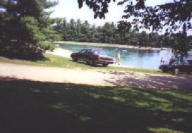 The witnesses grabbed a flashlight and went back to the area they had seen the creature cross just moments before. First place they looked they found two excellent prints in the sand. They described them as looking like human feet but much longer then the 18 year old males feet. He wears a size 12 shoe and the tracks were described to be "much bigger and wider" than his shoes. Then they crossed the road and headed to a small path that leads into the wood line. The second thing that was noticed was a big wet spot on the ground and a slightly smaller wet spot. I would assume this is where the creature stopped. After all they did say it was coming up from the pond. So, it is likely that the creature was in the pond and the two wet spots were from the creature standing with the water runing off its body. The question here is... was it in the water to cool off, get a drink (the pond is fresh water; spring fed) try to catch something to eat, all of the forementioned or none of the forementioned. When I was at the location several Geese were noted to be swimming in the deepest part of the pond.