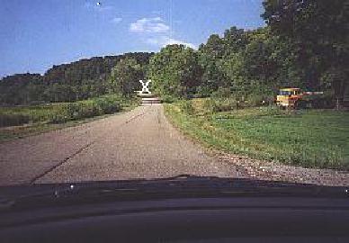 The white "X" in this picture represents the appx. location that a Newcomerstown teen spotted a creature crossing the road one night on March 12, 1999. To read about the sighting, click on March 12'th, 1999.
