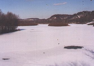 This picture was also taken off of the State Route 83 bridge looking east. It's the same location as the photo above, just in the heart of winter. Photo taken on February 6, 2000.