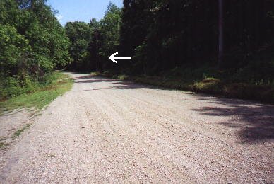The arrow in this photo points to a utility pole that an alleged Sasquatch walked right past, as crossing the road from left to right. This incident took place on February 20'th, 1999 and was witnessed by three individuals. This sighting can be read about by clicking on to February 20, 1999 and a detailed report of the incident will be available for you to read.
