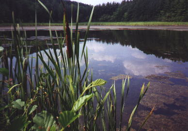 This photo looks through the cat tails at 'Piney Lake'. Named this for the row of pine trees in the backgrond. They continue on to the right out of frame. Behind this row of pines, many strange incidents have happened, including the sound of wood on wood.