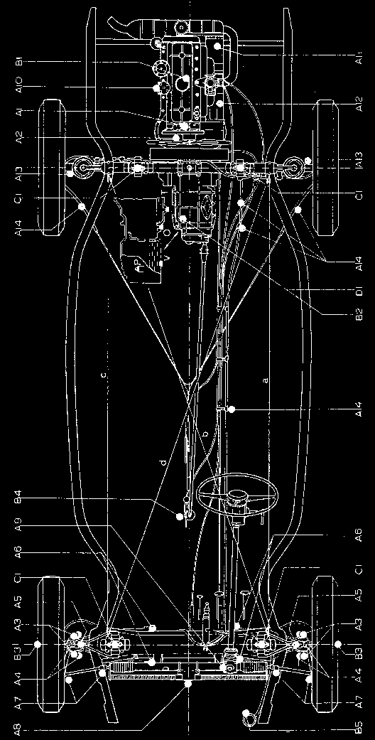 | A6. | onderste veerarm (chassis zijde) | 4 nippels, smeren met vet |