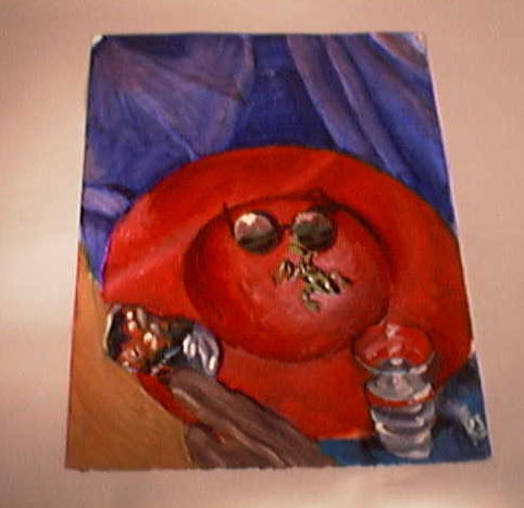 "Cake" This project consisted of the professor bringing each of us a piece of cake and having us paint it on a plaid piece of cloth. I think I enjoyed workin on this one too, though the perspective is off. That cake was hard as a rock by the end of the week, too. | ![]() |