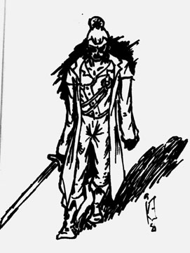 Elias stands about 6' with white hair. His left eye is dark and his right one is missing, covered by a black patch. His body bears a slender build and he usually dresses in Hollywood style swashbuckler attire from 60's movies, finding the idea humorous. Over this he wears a grey duster that ides his rapier and dagger which are always at his side. Elias was a sailor in the British Navy during the late 1700's. He had been a middle class merchant with a wife and three children, whom he loved dearly. In those eyes he had both of his eyes and long flowing chestnut hair and was quite handsome. He lived a happy life in London until the damned colonists revolted against the Motherland. He felt driven to help his nation end the civil war that plagued it and enlisted in the Navy to go and help squash the revolution. As everyone knows, the British lost that war, and Elias returned to his home, feeling dejected and disillusioned. Unfortunately, things were not going to get much better. Returning to his home, he found his family had been corrupted, merged into a horrible monster that attacked him. After slaying the thing, he realized that it had been his family and turning around, met the eyes of a hideously sinister-looking creature. The monster spoke to him in a voice similar to bells chiming. She told him that she was impressed; rare is the mortal who can destroy a vohzid and that she would spare his life for now. Elias, who had lost his eye in the battle and was bleeding badly from it, stared into the eyes of the creature and swore to destroy her. She merely chuckled like breaking glass and welcomed him to try. He then passed out from blood loss and awoke days later in the care of one of his friends that happened to be a doctor, who had nursed him back to health. His only lasting wounds were the loss of his right eye, and his chestnut hair going straight white when he stared into the monster's eyes. After three months of recovery, he was finally able to begin his search for the monster. Seeing the Navy as not liberal enough to allow for his hunt, he joined a band of pirates, and quickly rose through the ranks to become the captain of the ship. Following up on myths, legends, rumours, and tall tales, He found his way to what is today eastern Germany after about thirteen years of hunting. Finding the lair of the monster, he led his men to burn its viovode to the ground. The men killed all of the ghouls, but suffered heavy casualties. As night fell, the beast they had searched for rose from her slumber and rallied herself to capture the remaining seven men. Among them, she recognized Elias and was impressed by his audacity and persistance. She Embraced him and locked him in her laboratory for "experimentation". From the other six men, she fashioned a new vohzid to begin her work on replenishing her castle's defenses. Nearly two centuries passed to Elias in that dungeon, surviving on only enough blood to keep him alive. He kept himself sane by swearing to himself to witness the Final Death of the monstrosity that tortured him on a weekly, sometimes nightly basis. Then in the middle of the 20th century, the common dreary silence of the castle was broken by the sounds of explosions. The castle was being bombed! The WWII bombers razed the castle to the ground. Freed from his bonds, Elias waited till nightfall and then clawed his way to the surface. He then feasted on a dying buck, who had been winged by a peice of shrapnel and had been dying slowly for days in the shelter of the ruined castle. Full of blood and anger, Elias then turned to wait and see his sire dig herself from beneath the rubble. He waited till dawn, and then found a dark place in the rubble. Three nights he waited for her to crawl from the ruins, and when on the third night she did not, he decided she must be dead, and started traveling back towards England. Elias eventually encountered a member of the Camarilla, who explained what had happened to him and of the Masquerade. Elias spent nearly ten years with him learning about himself and the world around him before heaing to the United States. In the late 1990's, Elias appeared again briefly in New Orleans, where he was involved (but not the cause of) in a huge screw up, that made New Orleans a bad place for Kindred. He was last seen leaving New Orleans behind and his present whereabouts are unknown