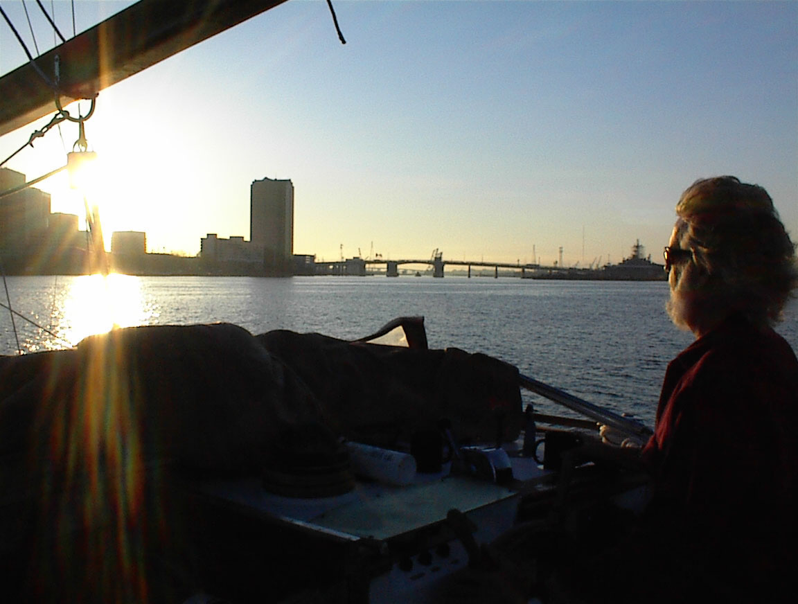 12 pm – Well, it didn’t take as long as expected to get here. We are presently docked at the Tidewater Yacht Marina in Portsmouth, VA right across from Norfolk. We went out for lunch at Baron’s Pub and got groceries and a ride back to the marina from a character named “Moe” who needs a rod bearing in his ride in a bad way. We are in for some bad weather for a few days, so it’s good to be at a dock.