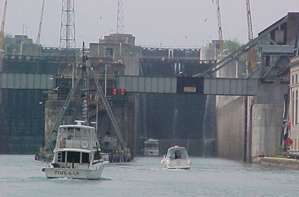 On the second half of our trip in the Spring of 2000, we departed Charleston and headed up the intercoastal waterway. At New York City we headed up the Hudson and took the Erie barge canal, which cut several hundred miles off the trip, but we had to take down the masts to do it. If we went the other route through the St. Lawrence Seaway , it would have taken us all the way up to Canada and back down into Lake Erie.